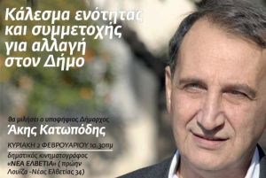 Θα μιλήσει ο υποψήφιος Δήμαρχος Άκης Κατωπόδης.